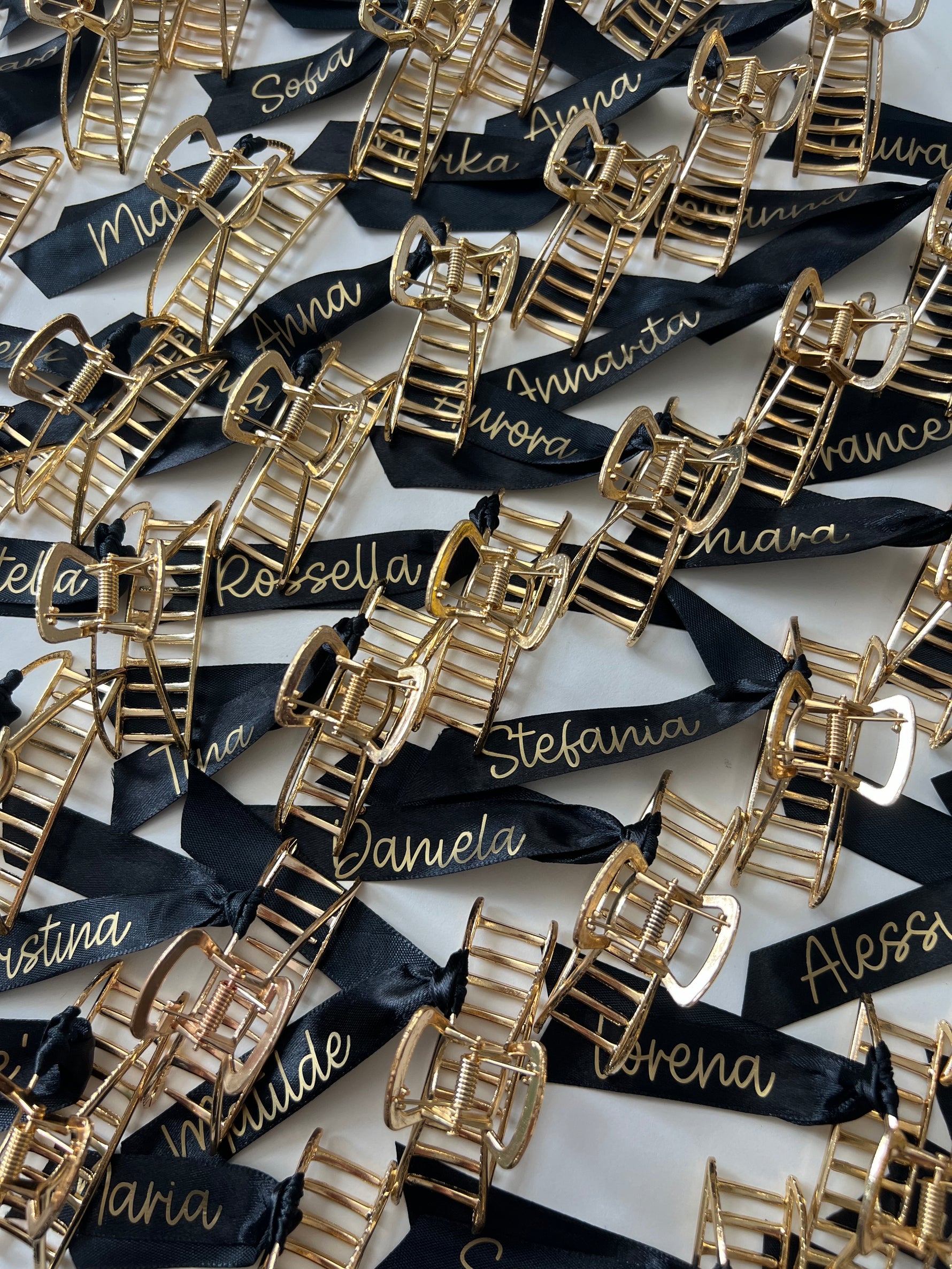 Prezzo unitario perPinza media per capelli, utilizzabile sia per capelli lunghi che capelli corti. Impreziosita con nastro e scritta personalizzabile