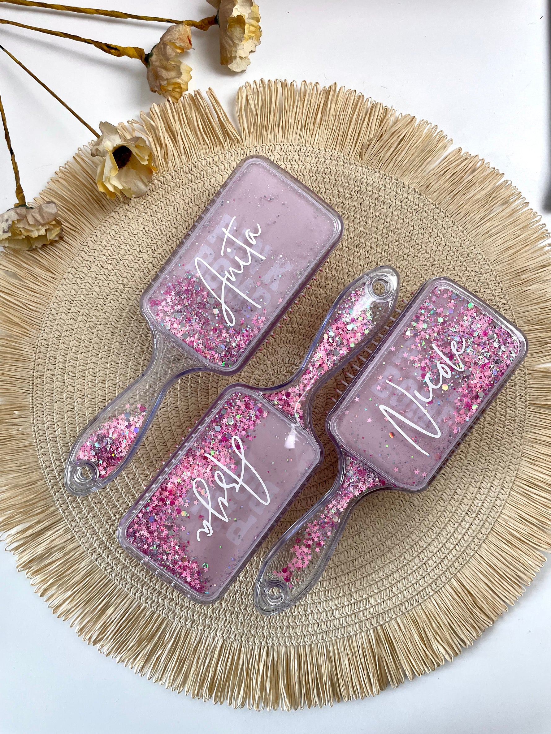 La spazzola è in plastica trasparente ed è decorata all'interno con stelline glitter che si muovono quando viene utilizzata. Non vi è presenza di nessun tipo di liquido tossico.