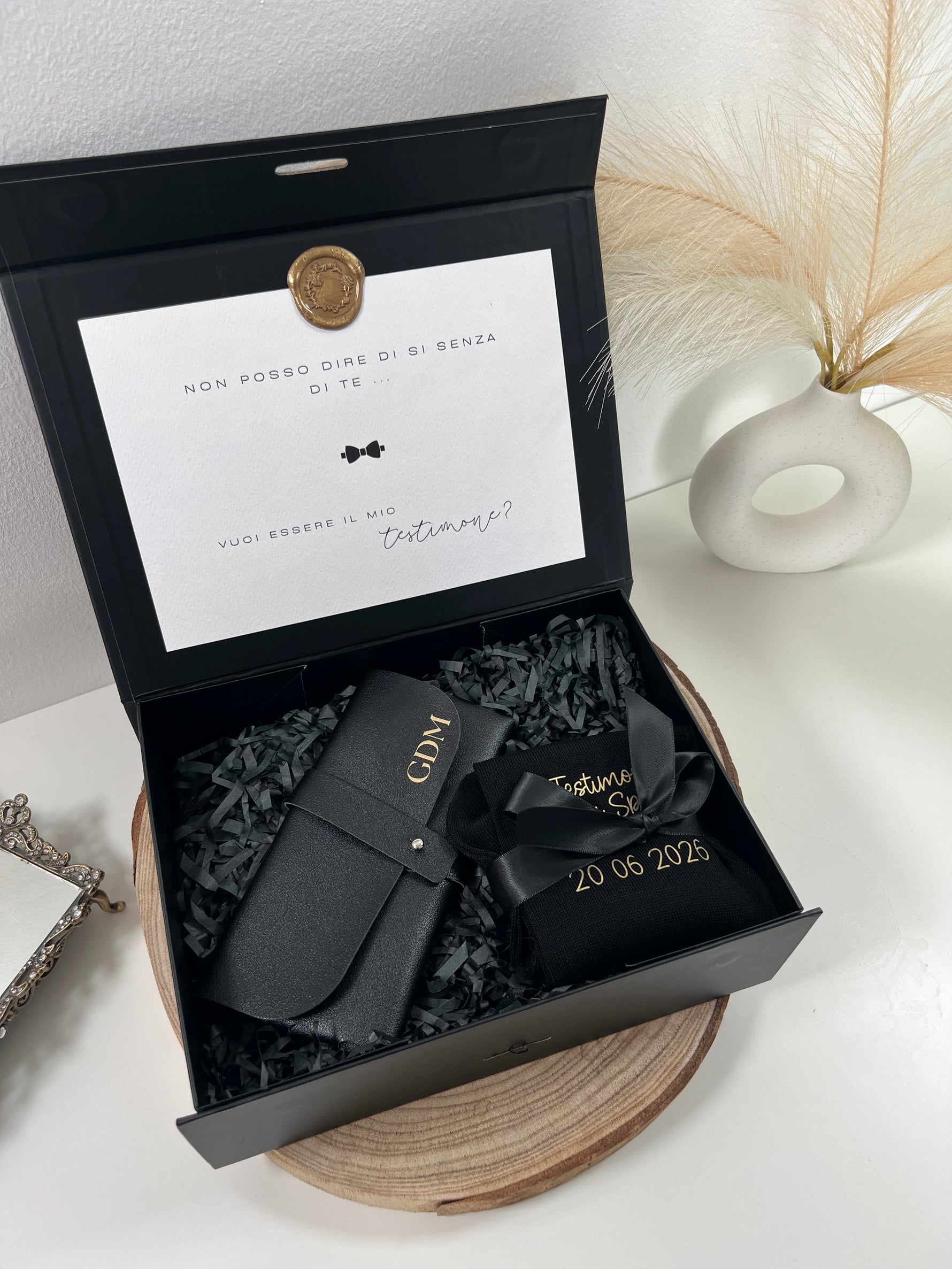 Prezzo unitario perCerchi un modo speciale per ringraziare il tuo testimone? La nostra Box Regalo "Box Best Man" è il pensiero perfetto per chi ti accompagnerà in uno dei giorni più importanti della tua vita. Un cofanetto elegante e curato nei minimi dettagli, che unisce stile, utilità e personalizzazione, per un regalo unico e indimenticabile.
