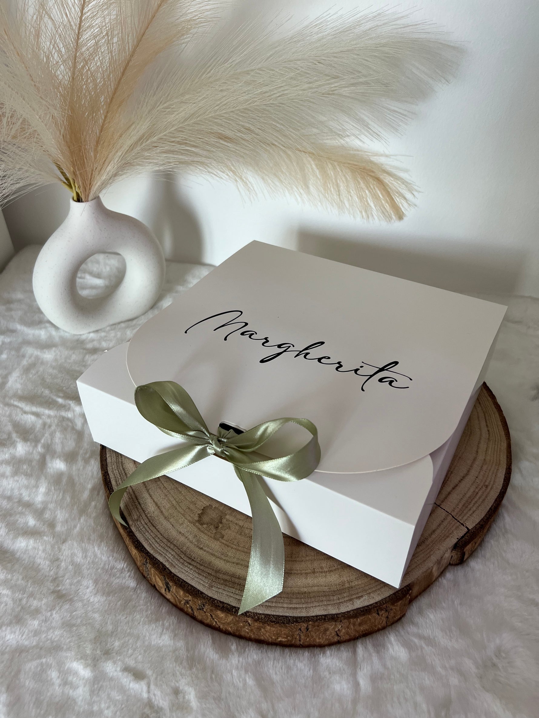 QUESTA BOX NON PREVEDE DEDICA INTERNA, IN QUANTO è SOLO UNA CONFEZIONE REGALO, PER POTER AVERE UNA BOX RIGIDA CON CON DEDICA INTERNA DEVI SCEGLIERE LA “BOX VUOTA” CON MISURA A SCELTA.
