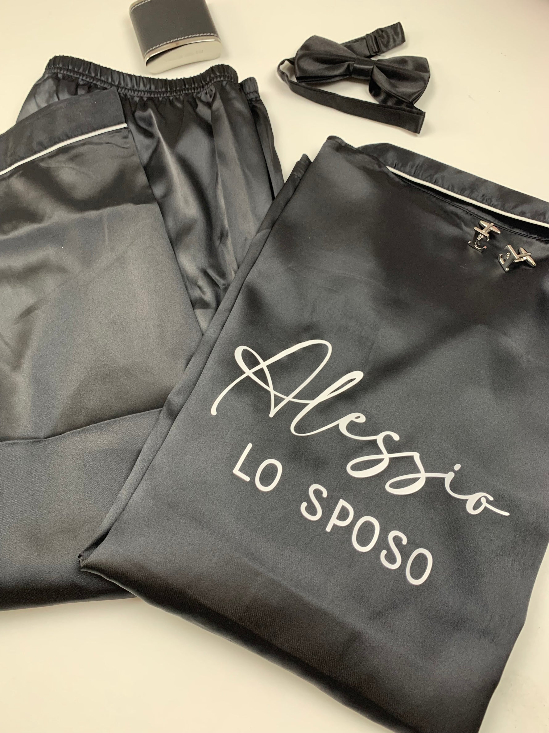 Un pigiama che unisce eleganza, comfort e un tocco personale! Il nostro Pigiama Luxury Uomo a Maniche Lunghe è pensato per chi ama distinguersi anche nei momenti di relax. Perfetto come regalo per il futuro sposo o un pensiero speciale per un papà straordinario, questo pigiama personalizzabile aggiunge un dettaglio unico ai tuoi momenti di riposo.