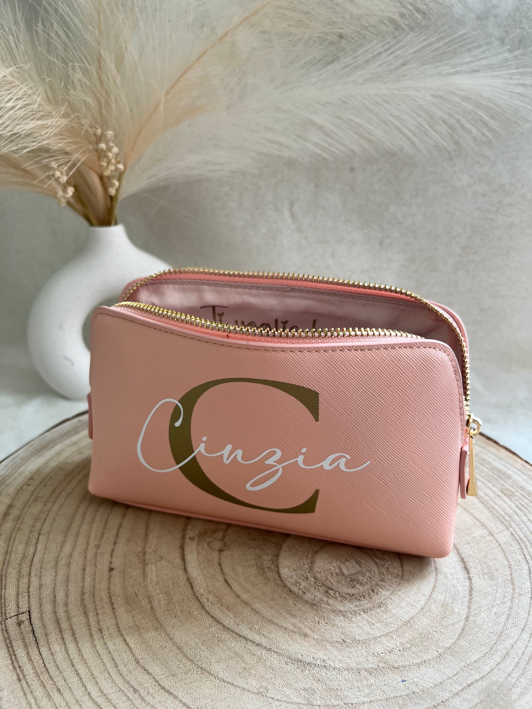 Questa raffinata trousse in ecopelle saffiano è il compagno perfetto per organizzare i tuoi essenziali di bellezza, accessori o piccoli oggetti personali. Dotata di un comparto principale regolabile con zip e una fodera morbida, offre massima versatilità d’uso.