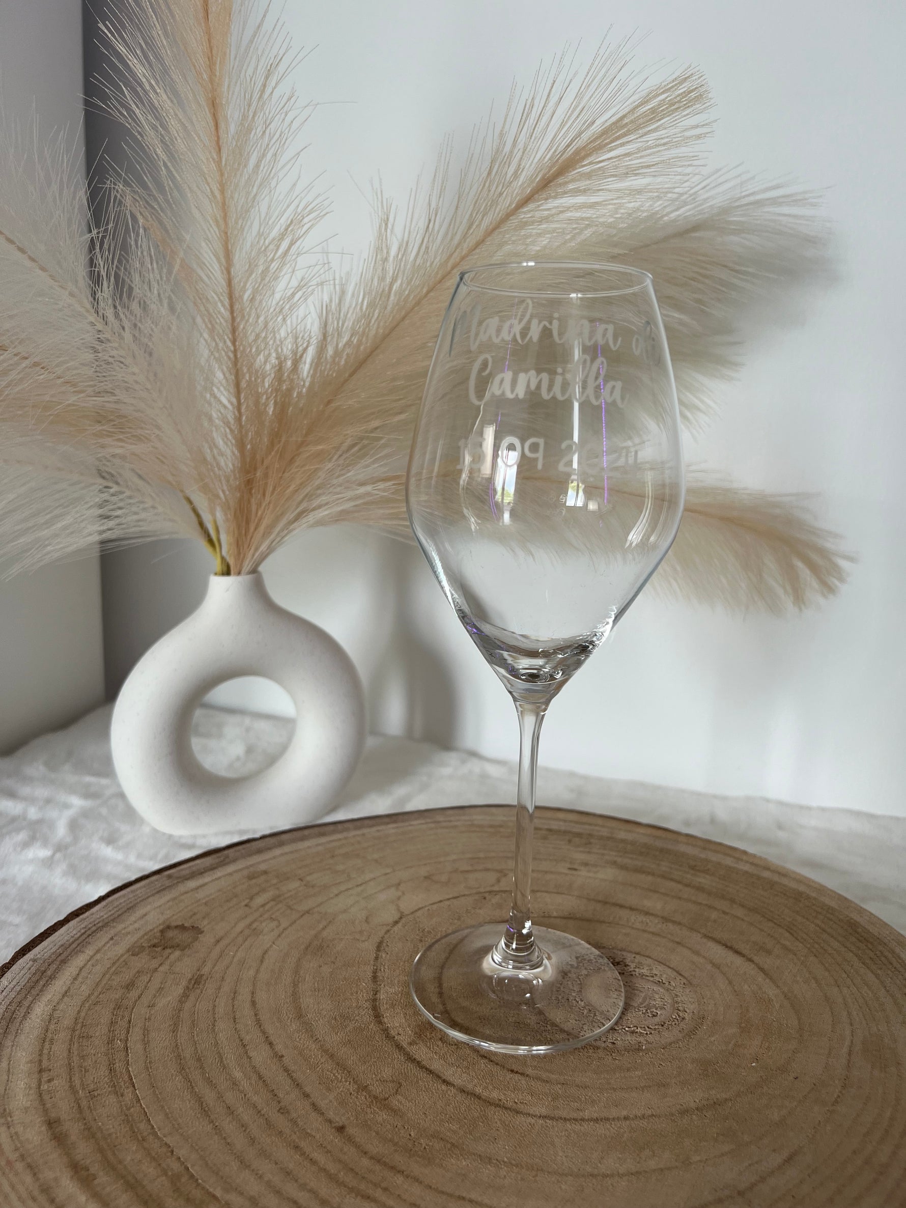 La personalizzazione dei calici da vino attraverso l’acidatura è una tecnica che prevede l’utilizzo di acidi per creare decorazioni o scritte sulla superficie del vetro. Questa metodica consente di ottenere un effetto opaco o satinato in specifiche aree del calice, aggiungendo un tocco distintivo ed elegante.