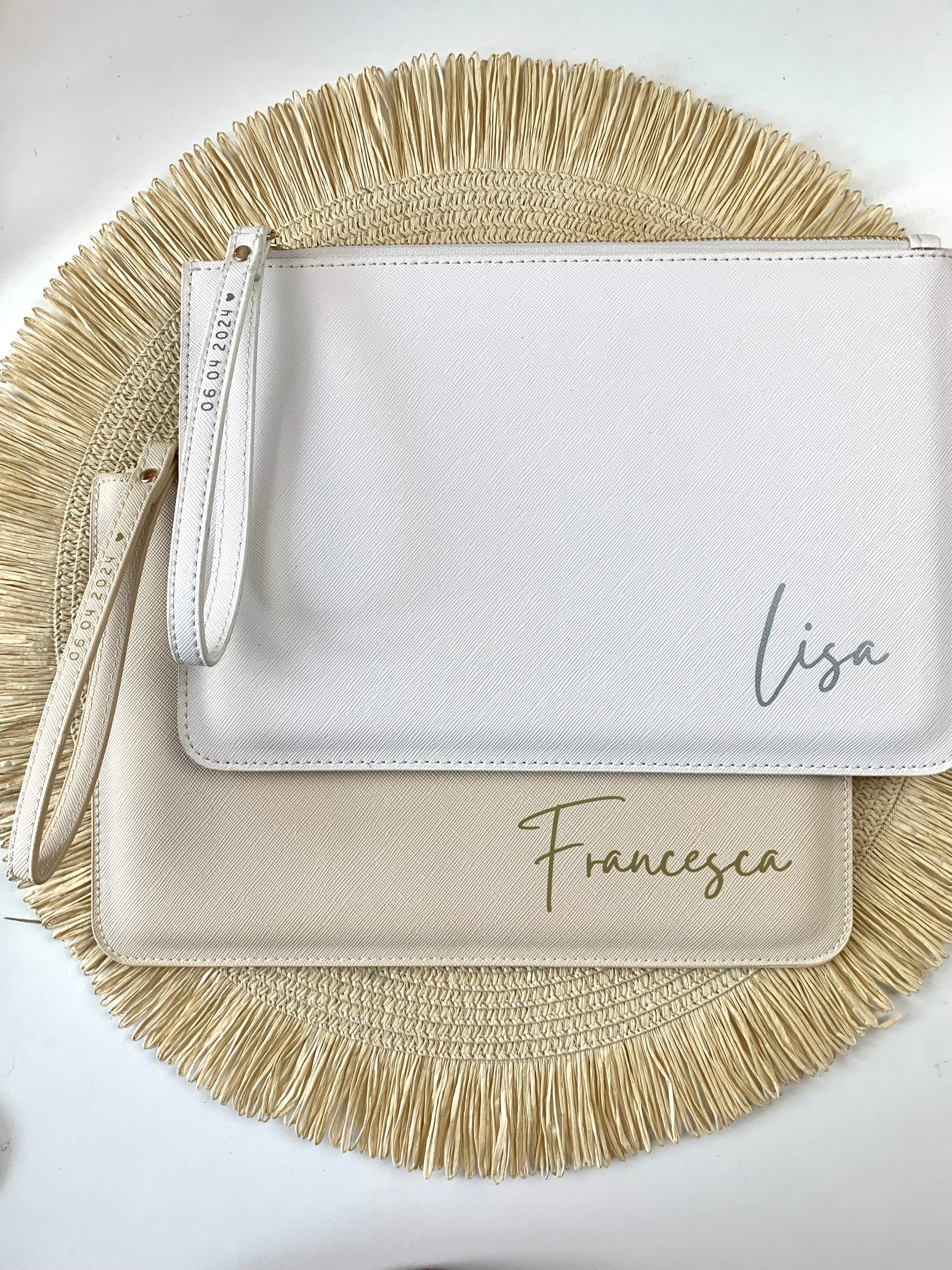 La pochette in ecopelle saffiano è l’accessorio ideale per aggiungere un tocco di eleganza e coesione al look delle tue testimoni. Grazie alla possibilità di personalizzarla in diverse colorazioni, si adatta perfettamente al tema del matrimonio, offrendo alle tue amiche un oggetto sia utile che stiloso.