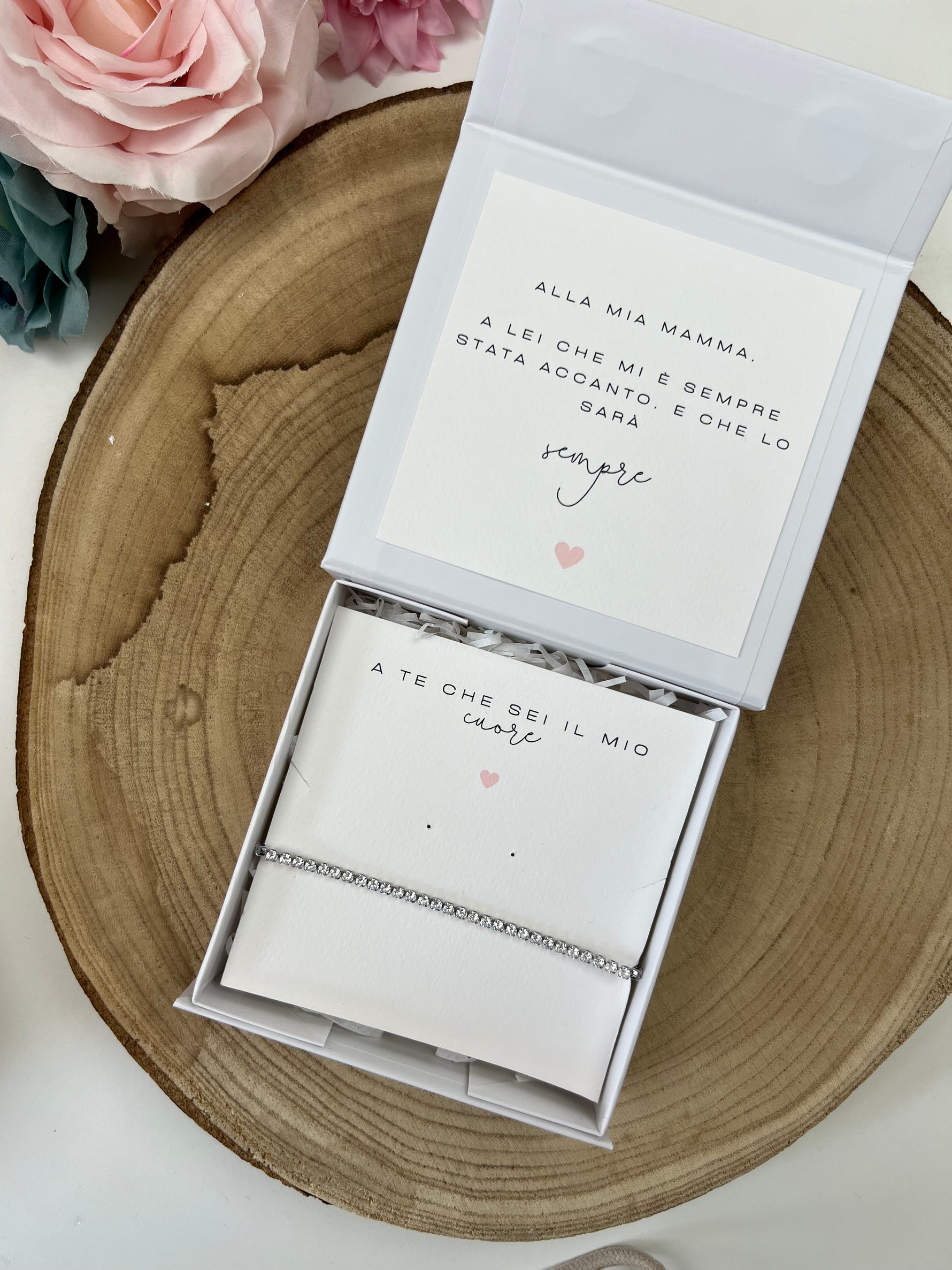 Dentro questa mini box regalo personalizzata si nasconde molto più di un semplice accessorio: c’è un pensiero scelto con il cuore, un gioiello prezioso che parla di affetto, gratitudine e legami indissolubili.
