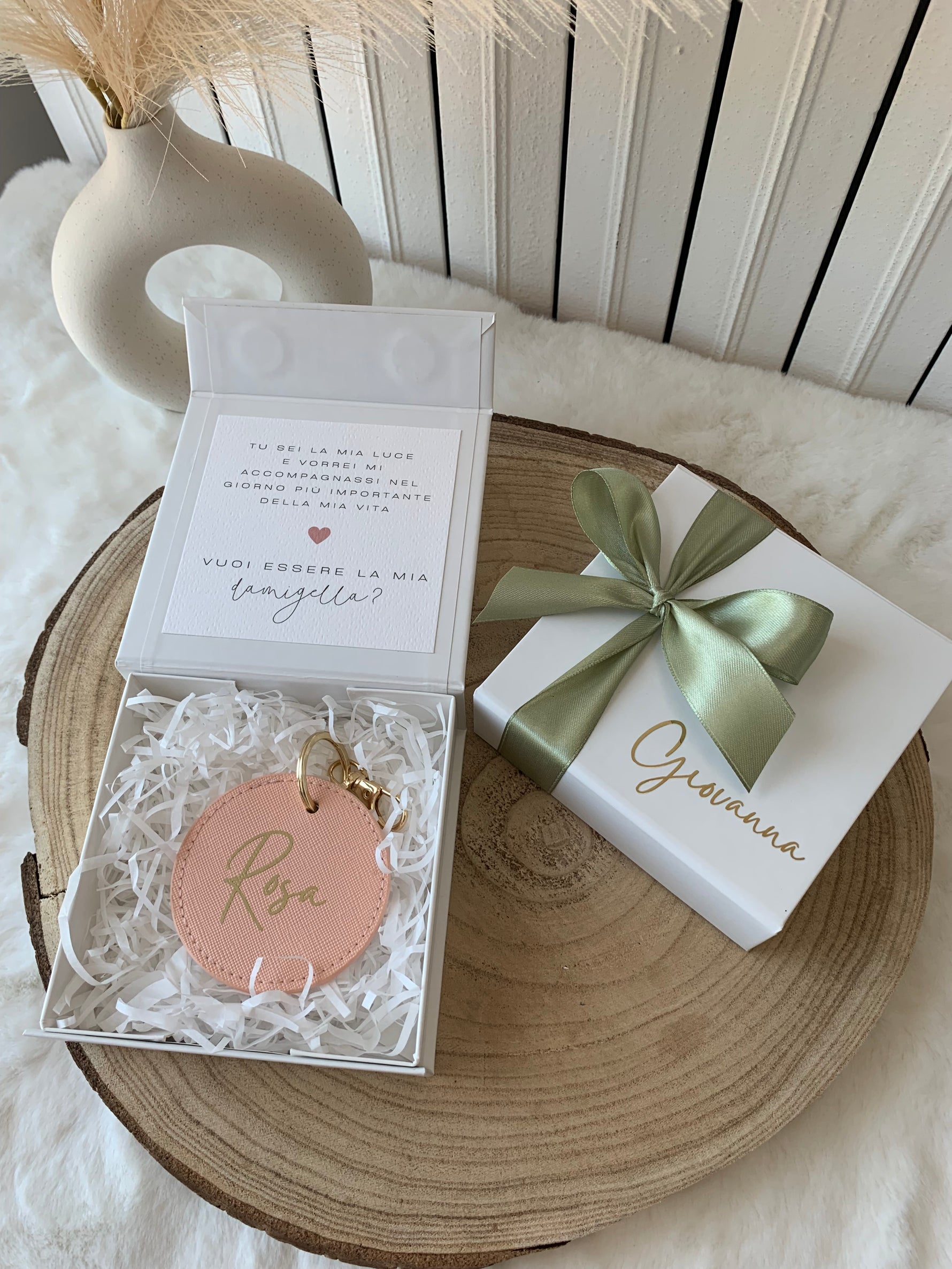 Scopri la nostra esclusiva Mini Box con Portachiavi, un'idea regalo perfetta per realizzare la tua proposta testimoni di nozze, damigelle o per qualsiasi occasione speciale. Pensato per simboleggiare l'affetto e la gratitudine verso chi ti è stato vicino nei momenti più importanti.