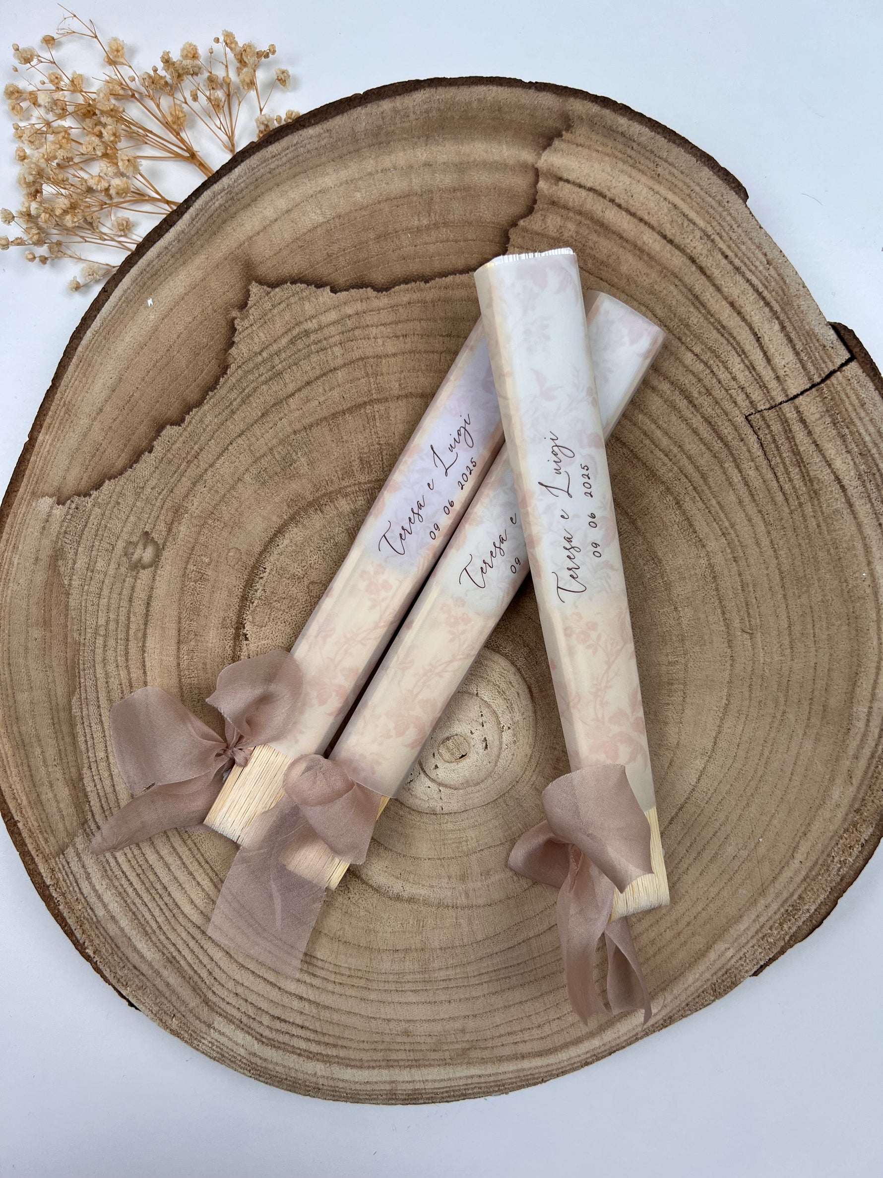 Sorprendi i tuoi ospiti con un accessorio elegante, ideale per matrimoni all'aperto o in estate, che non solo li rinfrescherà, ma diventerà un meraviglioso ricordo del tuo evento.