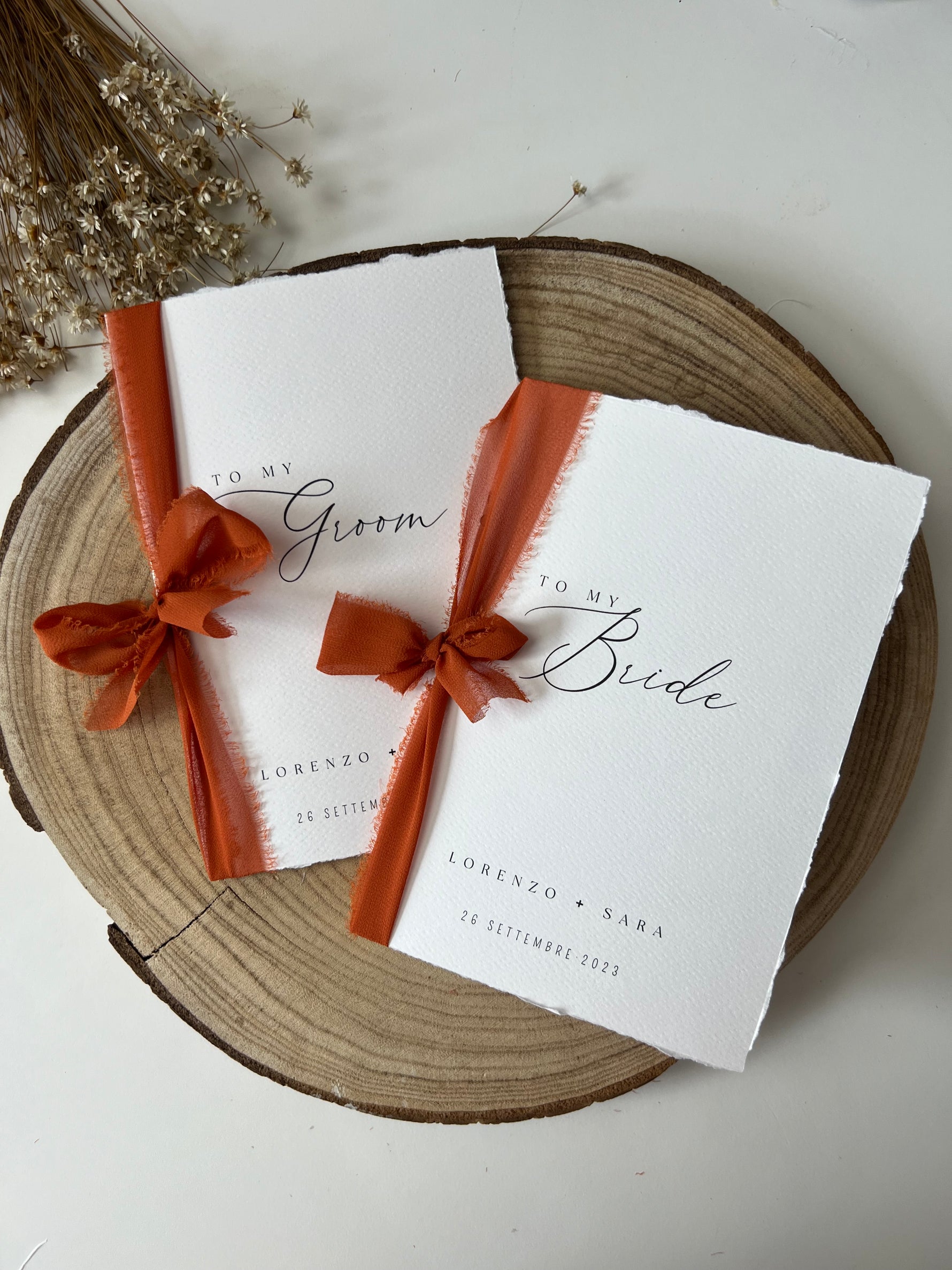 Ogni libretto è realizzato con cura artigianale per offrire un tocco raffinato e unico al momento più emozionante della cerimonia. La carta martellata, con la sua texture delicata e piacevole al tatto, conferisce un aspetto elegante e sofisticato, perfetto per custodire le vostre promesse d’amore eterno.