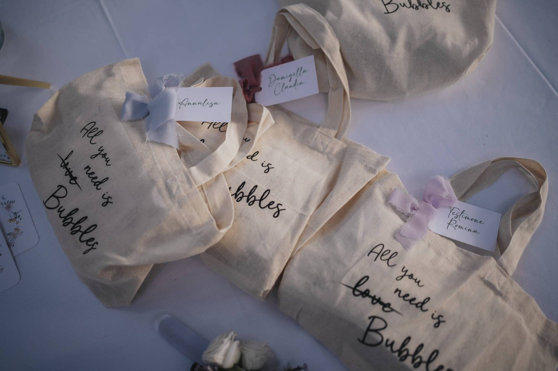 Le Wedding Bag sono il modo più dolce per accogliere i tuoi ospiti con stile e attenzione: fazzoletti, ventagli, bolle di sapone, snack e dettagli personalizzati… tutto ciò che serve per farli sentire parte del vostro giorno speciale.