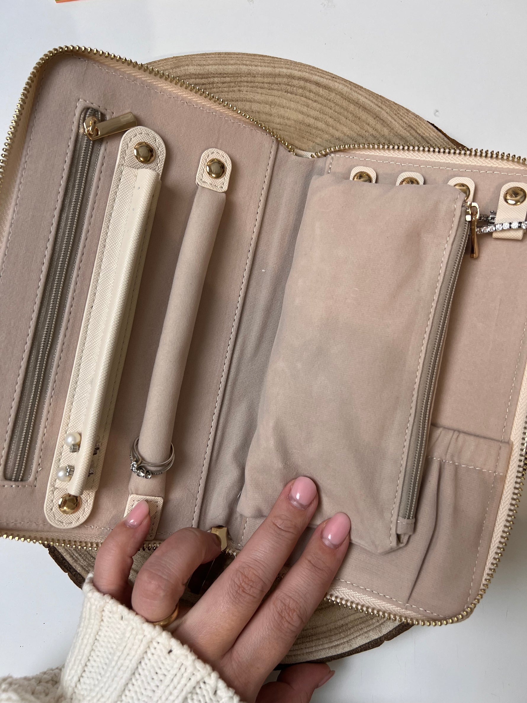 Con un elegante design a portafoglio e una pratica chiusura a cerniera, questo portagioie è pensato per offrire massima funzionalità e stile.